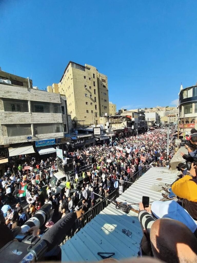 وأضاف العضايلة” يا من وقعتم اتفاقية وادي عربة المشؤومة، هل أعدتم لنا أرضاً وهل استعدتم الماء المسروق وهل تم حل قضية اللاجئين، وهل حافظتم على الوصاية الأردنية على المقدسات التي تنتهك كل يوم، وفي الوقت الذي تعلن المدارس الصهيونية أن برنامجها هو اقتحام الأقصى نحن نحرم القضية الفلسطينية على مناهجنا، هذا عيب وعار لا يقبل به الأردنيون”.