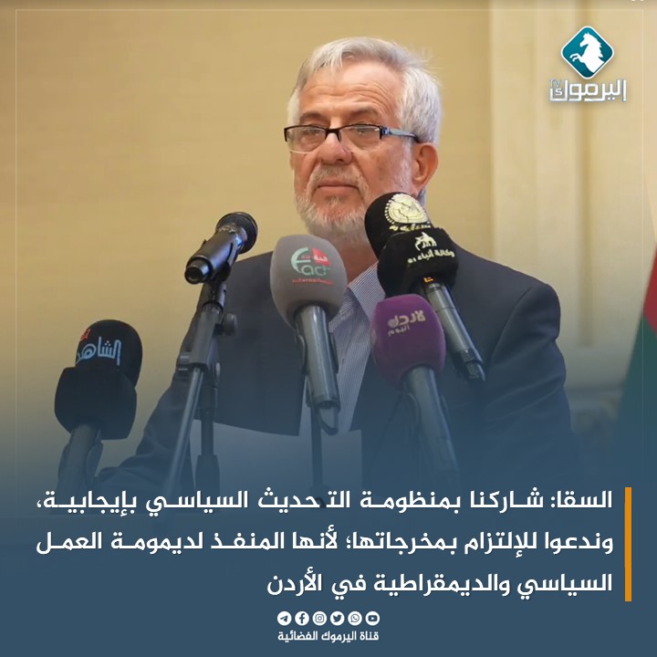 وأضاف السقا ” نحن كأكبر الأحزاب الأردنية على مدى أكثر من 30 عاماً ولدينا  31 عضواً في مجلس النواب ولنا أكثر من أربعين فرعاً في المملكة، نمارس كل إجراءاتنا بحسب قانون الأحزاب الأردني والدستور، ونعتقد أننا نمارس حقنا الدستوري حسب قانون الأحزاب وأهداف الحزب المعلن عنها في نظامه الأساسي في الدفاع عن مصالح الوطن والمواطن والحفاظ على أمن الأردن واستقراره والتفاعل بإيجابية مع مختلف قضايا الوطن والأمة عبر الحزب وكتلته النيابية، ونؤكد ضرورة الاستمرار في مسار التحديث السياسي لأنه المنفذ لديمومة الحياة الديمقراطية والحزبية في الأردن، وليس لدينا ما نخفيه”.