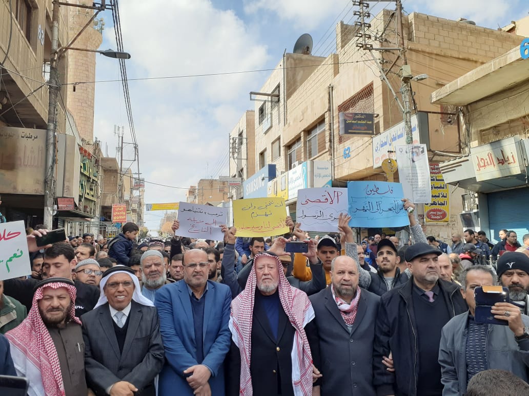 انطلقت مسيرة شعبية جماهيرية حاشدة من أمام مسجد عمر بن الخطاب وسط مدينة الزرقاء عقب صلاة الجمعة، رفضا وتنديدا بالمخطط الأمريكي الصهيوني المسمى بـ”صفقة القرن”.