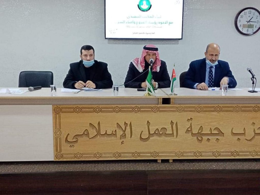 وأكد العضايلة أن استمرار النهج الرسمي في استهداف القوى السياسية والمجتمعية والنقابية ومن ذلك ما تتعرض له الحركة الإسلامية النقابات وفي مقدمتها نقابة المعلمين، وما تعرض له مؤخراً حزب الشراكة والإنقاذ، يتعارض مع التصريحات الرسمية حول الإصلاح ووقف التدخل الأمني في الحياة العامة، مما يتطلب إرادة سياسية جادة وإجراءات فاعلة لتحويل هذه التصريحات لواقع عملي بعيداً عن سياسة تسكين الأزمات والتنفيس الخارجي، كما اكد استمرار الحزب في نهج الدفاع عن مصالح الوطن والمواطنين وكرامتهم، ومد يد الشراكة الوطنية مع مختلف القوى لتشكيل جبهة وطنية موحدة للمطالبة بالإصلاح وبناء رؤية وطنية في مواجهة ما يتعرض له الوطن من تحديات.