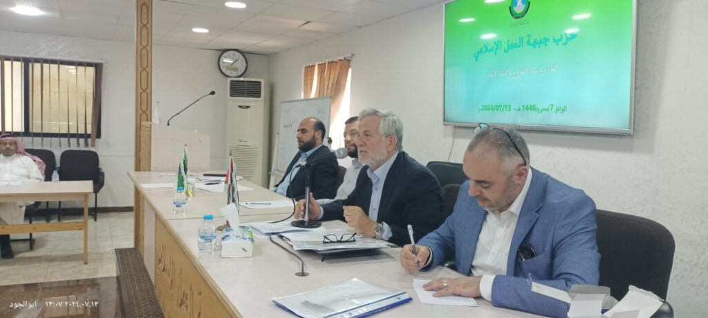 التقى المكتب التنفيذي لحزب جبهة العمل الإسلامي رؤساء فروع الحزب وأمناء السر لبحث عدد من الترتيبات الإدارية المتعلقة بالحزب وفروعه لا سيما فيما يتعلق بالانتخابات النيابية المقبلة والحراك المندد بالعدوان على غزة والتضييق الأمني بحق عدد من كوادر الحزب ومشاريع العمل خلال الفترة المقبلة، مع بحث آخر المستجدات على الساحة المحلية.