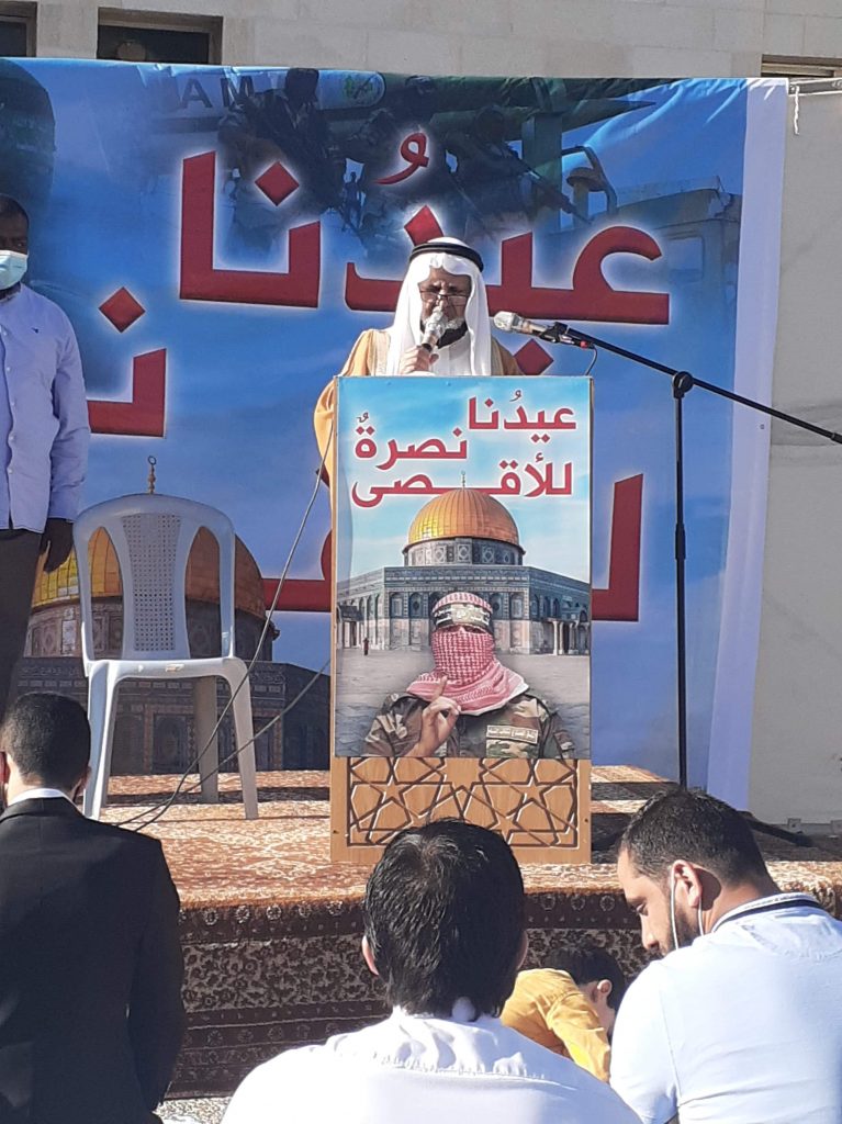 وتضمنت الفعالية التي حضرها حشد من المواطنين وقيادات الحركة الإسلامية إقامة صلاة العيد، حيث قال رئيس مجلس علماء الحزب الدكتور همام سعيد في خطبة العيد ” إلى جانب العيد اليوم فتح ونصر وتمكين، ودخول للعيد إلى المسجد الأقصى المبارك بعد سنوات من صلاة العيد فيه تحت حراب جنود الاحتلال فيما يصلون فيه اليوم تحت صواريخ القسام فهذا العيد يأتي بطعم الشهداء والانتصارات ونستذكر فيه ذكرى بدر وأحد والخندق وفتح مكة فهذا هو العيد الحقيقي بعيدا عن طعم الذل والتطبيع والاستسلام”.