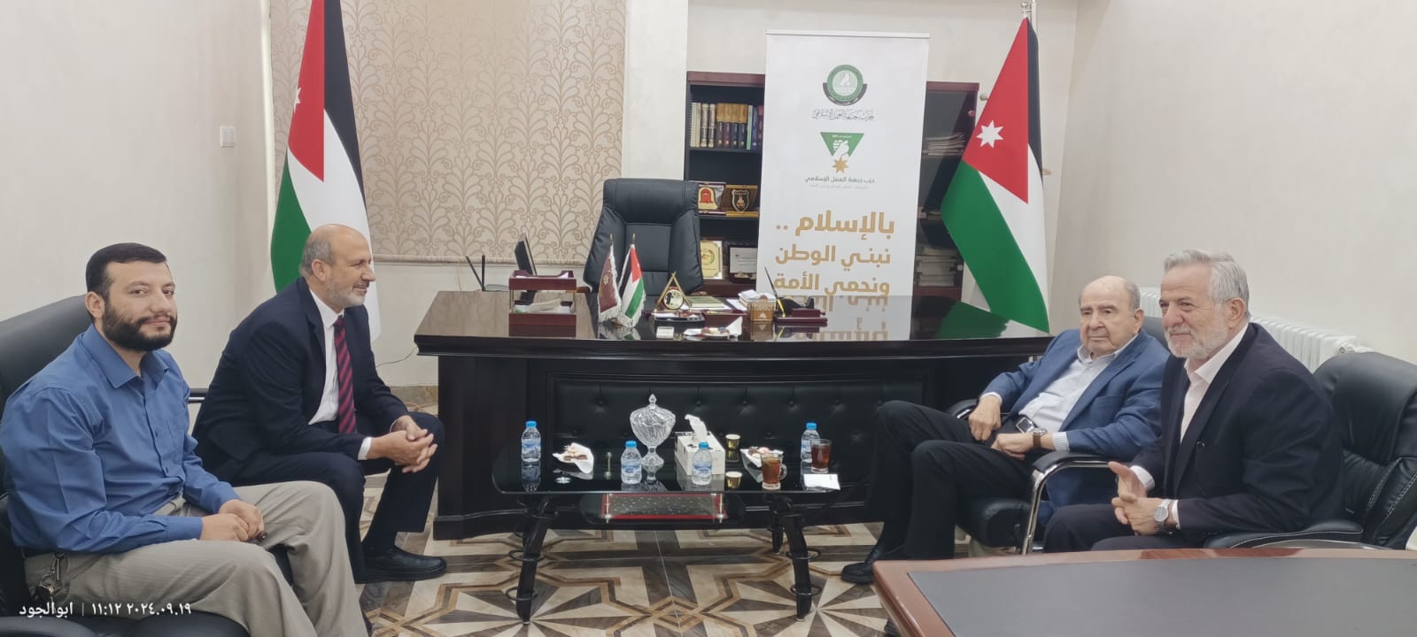 استقبل الأمين العام لحزب جبهة العمل الإسلامي المهندس وائل السقا في مكتبه صباح اليوم رئيس الوزراء الأسبق طاهر المصري الذي قدم التهنئة للحزب والحركة الإسلامية بما حققته من فوز في الانتخابات النيابية.
