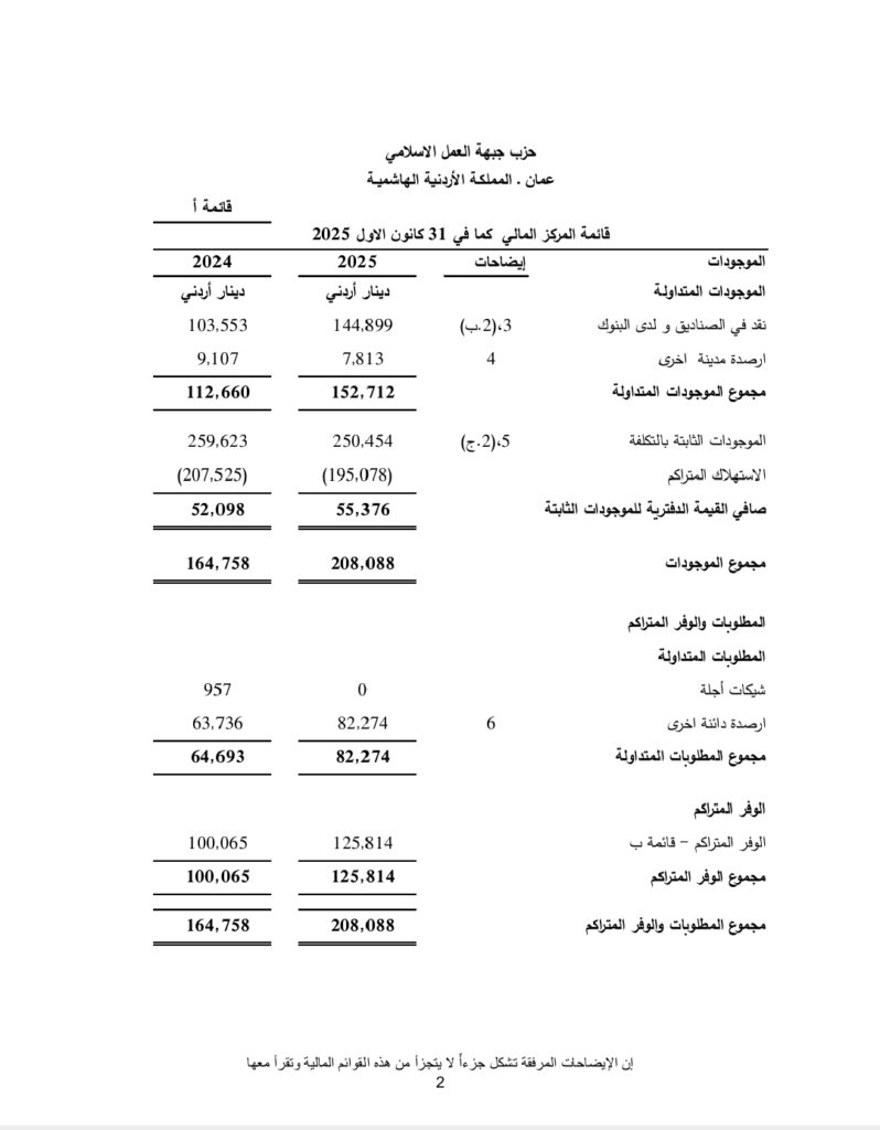 أقر مجلس شورى حزب جبهة العمل الإسلامي في جلسته العادية التي عقدها يوم السبت 28-3-2026 التقرير المالي للحزب والذي تضمن الميزانية العامة للعام 2025 والموازنة التقديرية للعام 2026