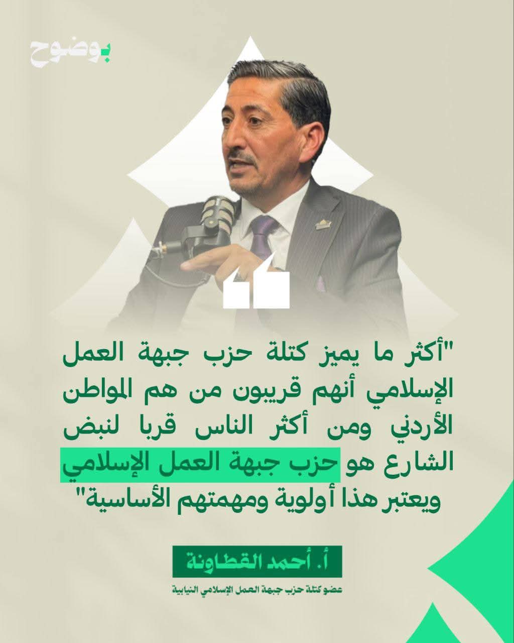 كما شدد على أن ما يميز كتلة حزب جبهة العمل الإسلامي هو قربها من هموم المواطنين، معتبرًا أن “نبض الشارع” هو الأولوية الأساسية لعمل الحزب داخل المجلس النيابي.
