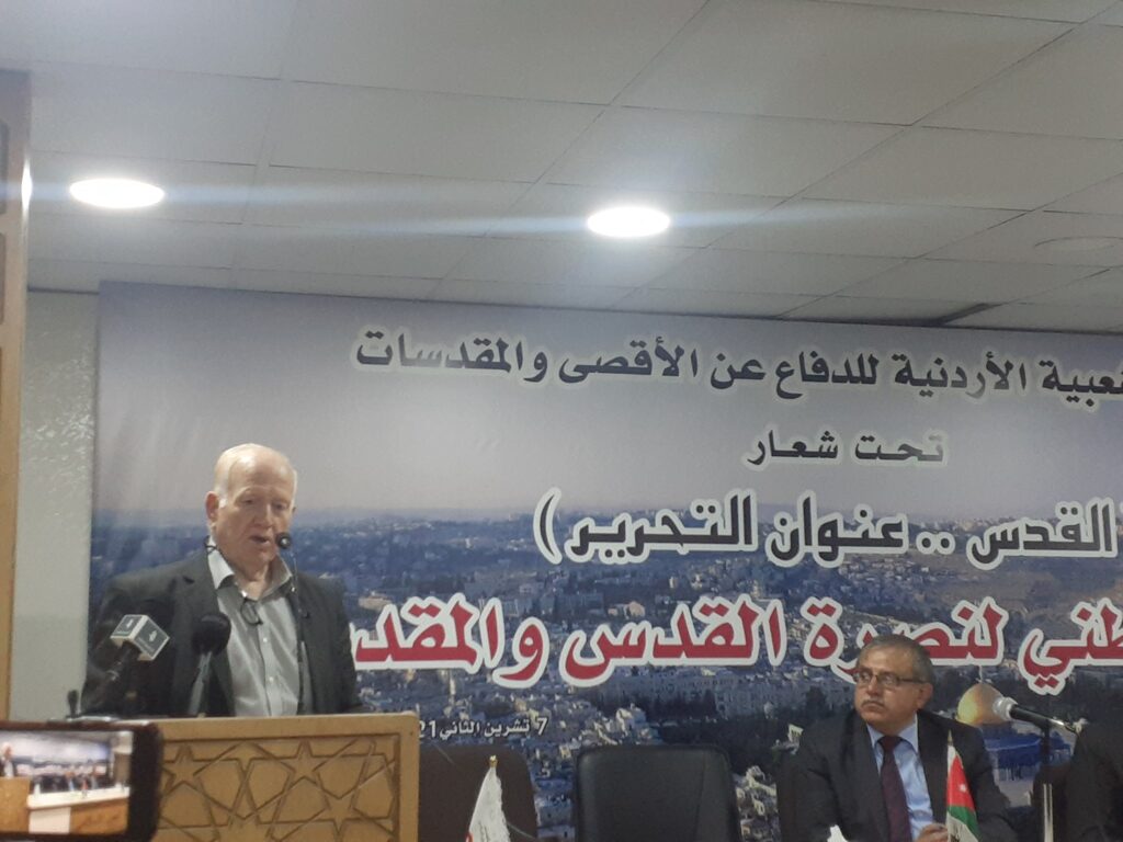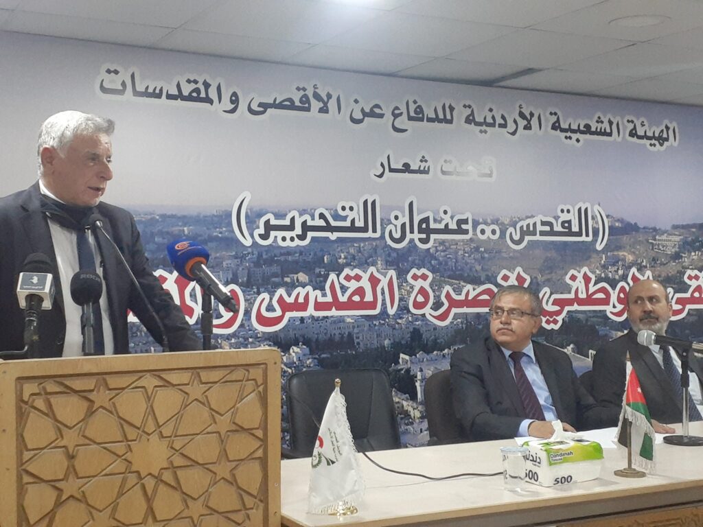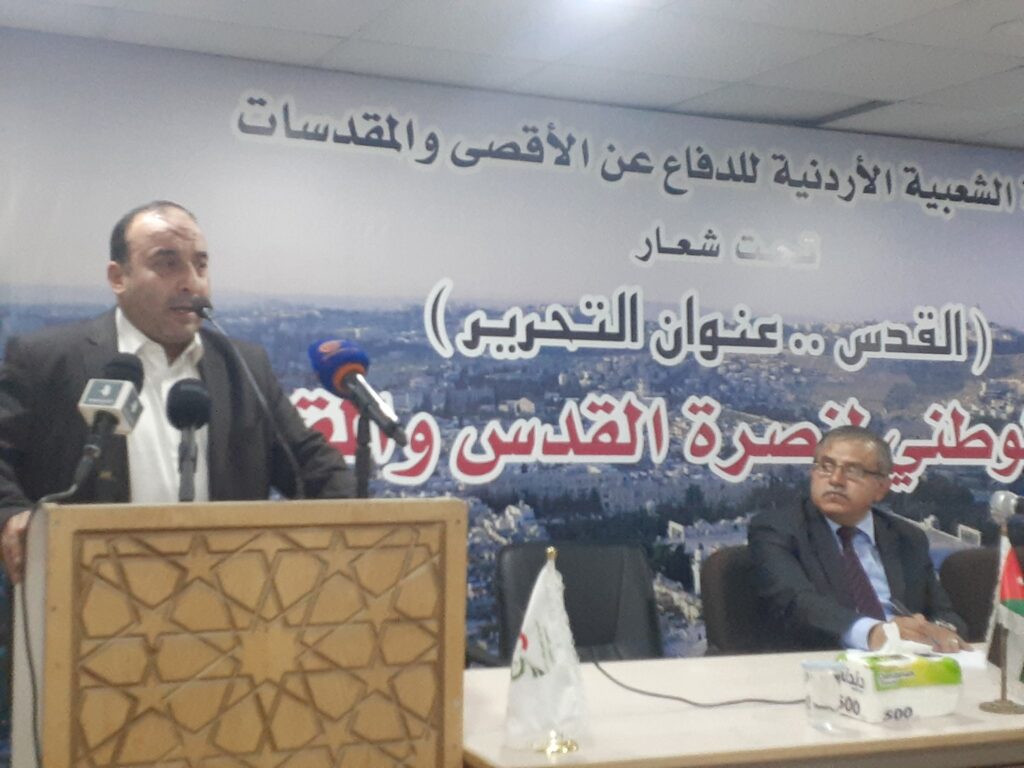 في حين أكد الأمين العام لحزب الجبهة الأردنية الموحدة فاروق العبادي على أهمية مثل هذه الهيئات في تنظيم التحرك الشعبي تجاه القضية الفلسطينية كما دعا للتوجه للهيات الدولية ومنظمات المجتمع الدولي ومحكمة الجنايات الدولية لمخاطبتها للتحرك في وجه الاحتلال واعتداءات في القدس والمقدسات وخرقه لقرارات الشرعية الدولية التي تؤكد على رفض الاحتلال واعتداءاته ضد الأرض والمقدسات.