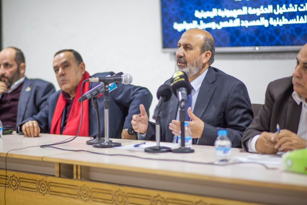 فيما أشار رئيس مركز دراسات الشرق الأوسط جواد الحمد لما يتعرض له الكيان الصهيوني من تغيرات داخلية،ومساعي حكومة نتنياهو لتنفيذ مشاريع الضم وإنهاء حل الدولتين، والتوسع في مشاريع الاستيطان والضم وتهويد القدس ومصادرة الأراضي والتهجير ، ومواصلة مسار التطبيع مع الأنظمة العربية على حساب القضية الفلسطينية.