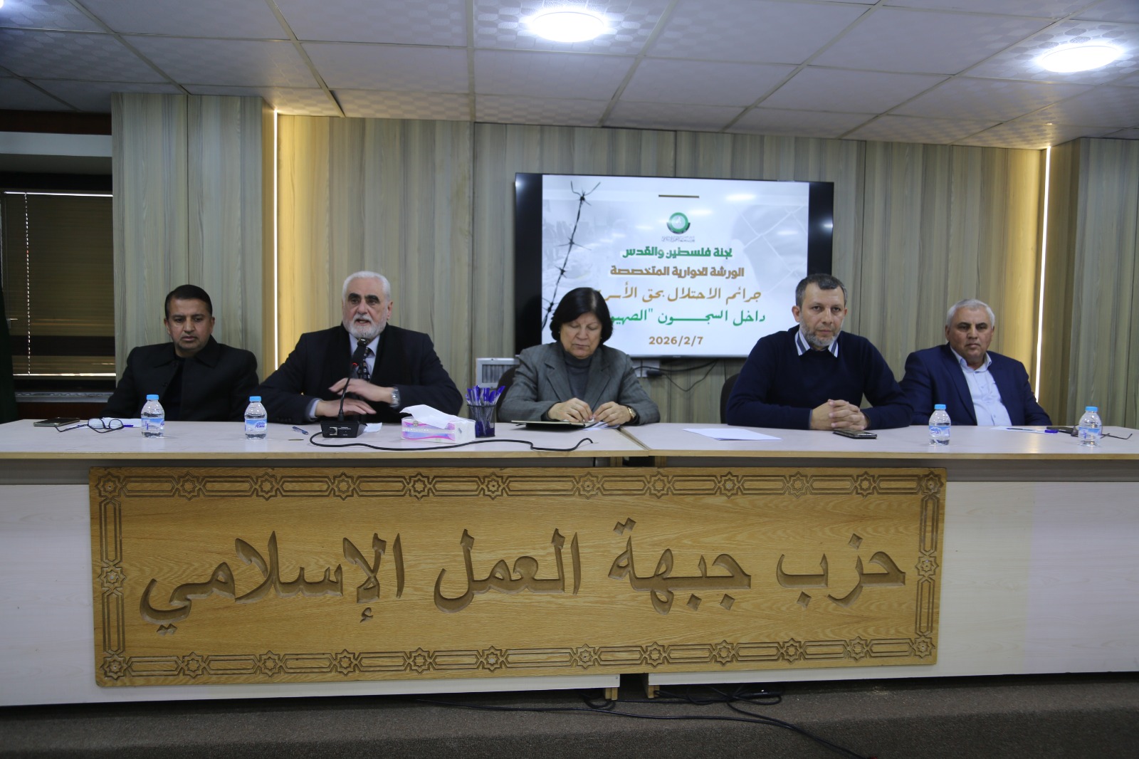 عقدت لجنة فلسطين والقدس في حزب جبهة العمل الإسلامي، اليوم السبت، ندوة حوارية متخصصة ناقشت الجرائم والانتهاكات التي يرتكبها الاحتلال بحق الأسرى الفلسطينيين داخل السجون الصهيونية، بمشاركة واسعة من شخصيات وطنية وحقوقية وإعلامية، وبحضور لافت من المهتمين والمتابعين للشأن الفلسطيني وقضية الأسرى.