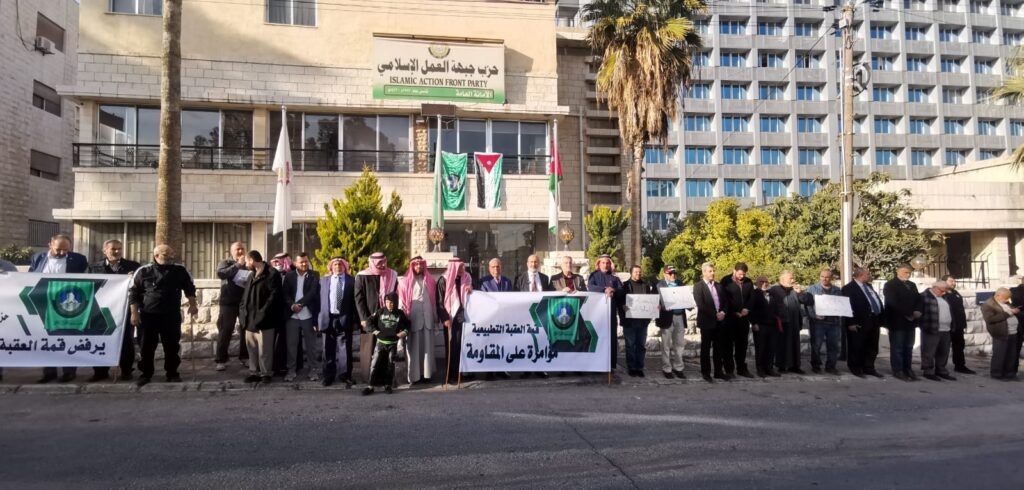 أكد المتحدثون في الوقفة التي أقامها حزب جبهة العمل الإسلامي مساء اليوم على رفض قمة العقبة التطبيعية التي ستعقد اليوم في مدينة العقبة بمشاركة ممثلين عن الكيان الصهي~وني والسلطة الفلطسنية ومصر والولايات المتحدة، ضمن ما وصفوه بمحاولة وأد تصاعد عمليات المق~اومة في الضفة الغربية في مواجهة جرائم الاحتلال.