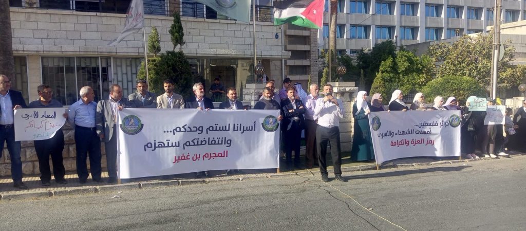 أكد المشاركون في الوقفة التي أقامتها كل من لجنة فلسطين والقدس والقطاع النسائي في حزب جبهة العمل الإسلامي مساء السبت، انتصارا لحرائر الأردن والأسرى في سجون الاحتلال على واجب دعم صمودهم في معركة الأمعاء الخاوية الي أعلنوا عنها في وجه السجان الصهيوني، ودعم المقاومة ووقف كافة أشكال التطبيع مع الاحتلال.