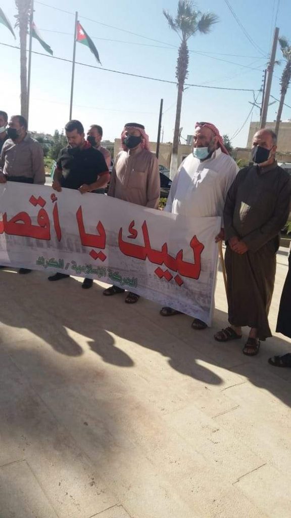 أقيمت بعد صلاة عصر اليوم وقفات احتجاجية في عدد من مناطق المملكة بدعوة من حزب جبهة العمل الإسلامي والحركة الإسلامية انتصاراً للمسجد الأقصى والمرابطين في القدس وتصديهم للاعتداءات الصهيونية السافرة على المقدسات.
